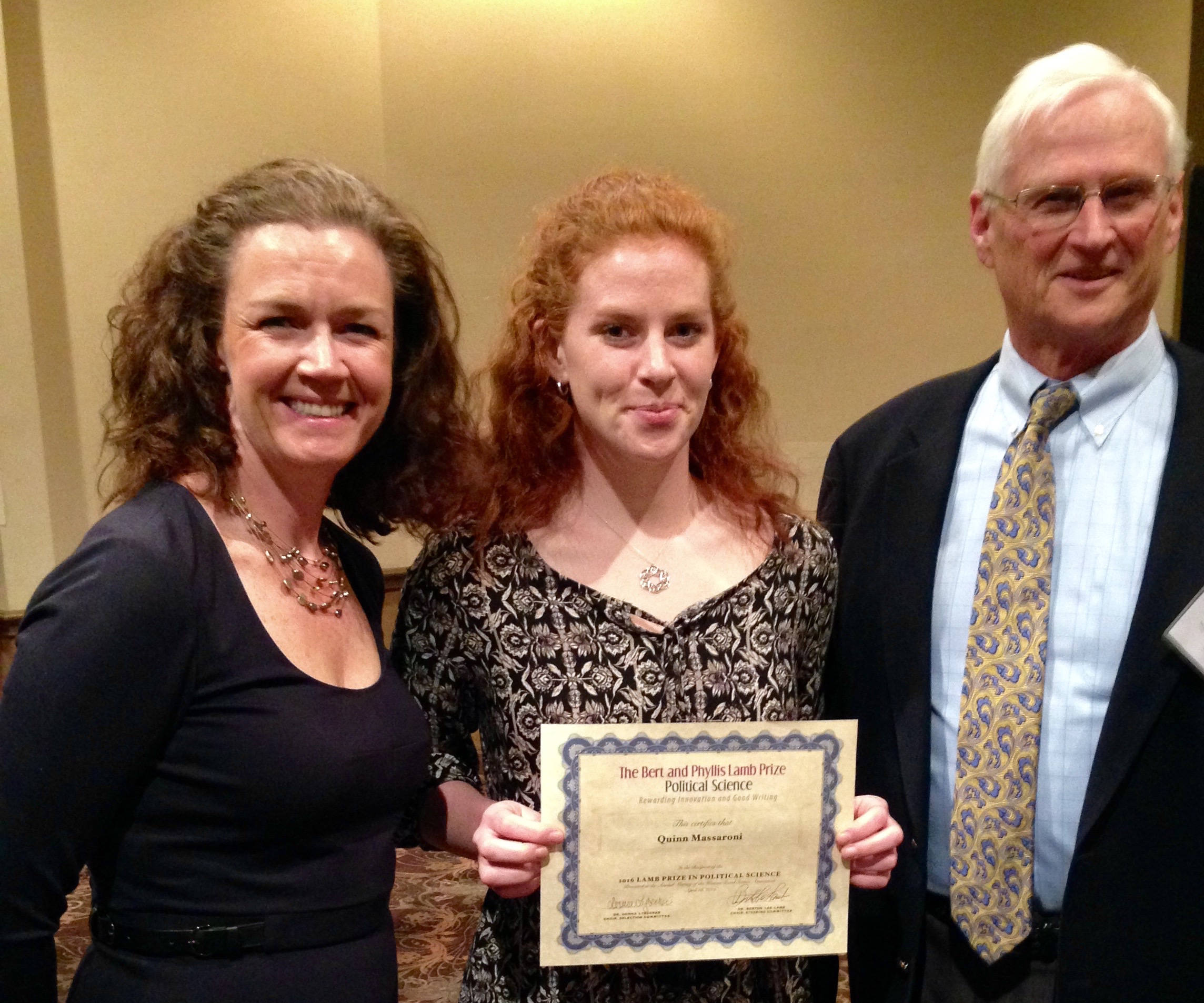 Dr. Heather Albanesi (WSSA President), Quinn Massaroni (2016 Recipient), Dr. Berton Lee Lamb.