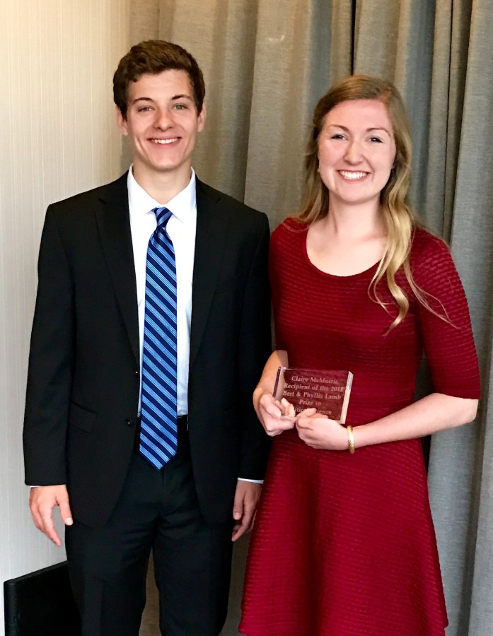 David Belcher, recipient of the 2015 Prize, and Claire McMorris, 2017 recipient